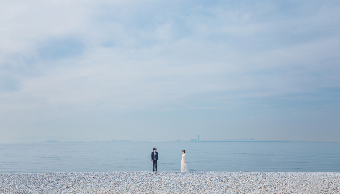 白砂青松をイメージした松と白い大理石の玉石を敷き詰めた真っ白なロングビーチです。
